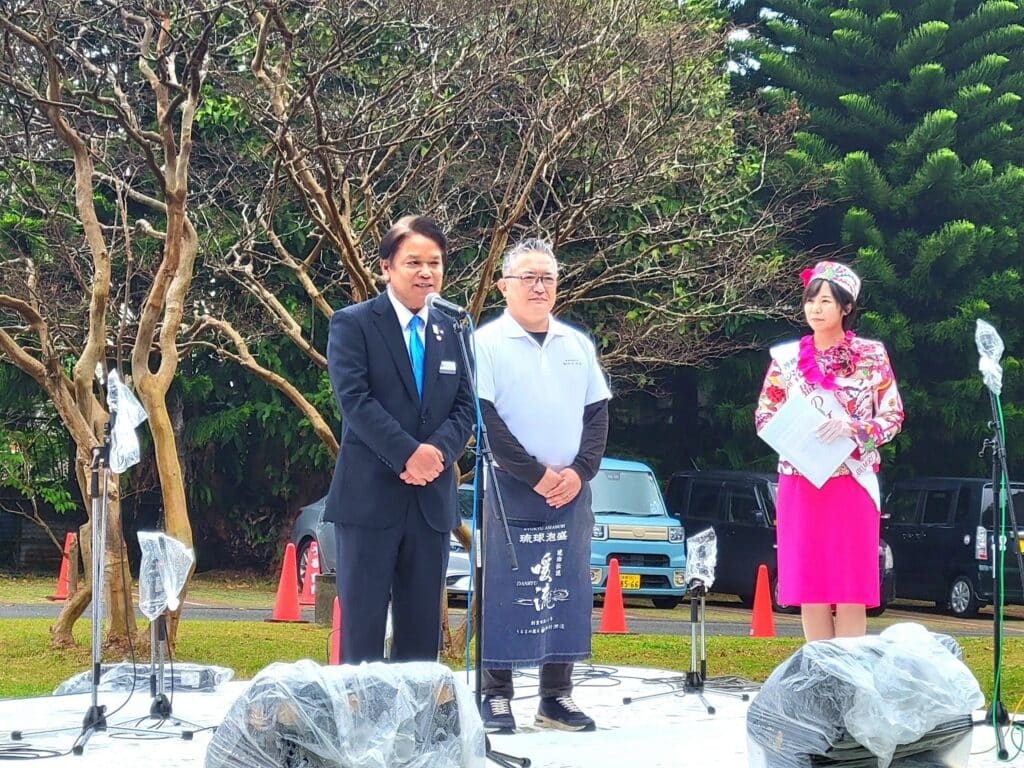 3/21(土)ステージの始まりにうるま市長が駆けつけて下さり、ご挨拶を頂きました!