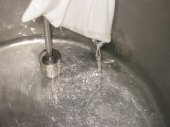原料米に付いている糠(ぬか)を取除くために丹念に洗米を行います。