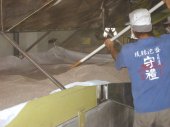 蒸し上がった原料米を適温まで冷まし、黒麹菌を散布します。