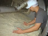 浸漬した原料米を十分に水切りした後、蒸気で原料米を蒸しあげます。